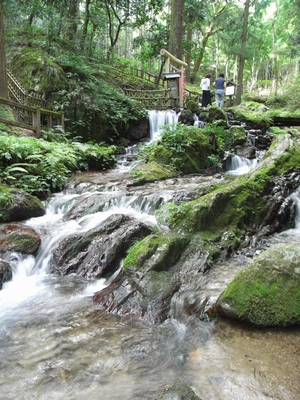 敦賀から北陸自動車道に入り福井ICで下ります。IC近くにある一乗谷の朝倉氏遺跡にも寄ってみました。一乗谷に着いたのは9時少し前です。ここまで4時間近くかかっています。一乗谷は戦国時代の遺跡で、戦国時代に越前国を支配した朝倉氏の居館および山城と城下町の跡があります。城下町は復元されていて見学できます。今から約500年前に、この地で人々が暮らしていたかと思うと感慨深いものがあります。資料館や遺跡を見て回っていると、あっという間に2時間半くらいたってしまいお昼時です。福井は越前蕎麦が有名です。近くに雰囲気の良さそうな蕎麦屋「利休庵」があったので入ってみました。山菜のてんぷらとおろし蕎麦、そばがきを注文しました。おろし蕎麦は美味しかったです。蕎麦を食べた後、遺跡横を流れる一乗谷川上流にある「一乗滝」へ行ってみました。落差12mの荘厳な滝で、巌流島で宮本武蔵と戦った剣豪、佐々木小次郎は、この滝で修行を積み、かの秘剣「つばめ返し」をあみだした所という言い伝えがあるそうです。行ってみると人が多くてビックリしました。涼を求めて人が集まってきている感じです。一乗滝を後にして、R158を東進し九頭竜湖に向かいます。九頭竜湖にある道の駅「九頭竜」で休息。その後、東海北陸自動車道で少し南下し郡上八幡へ。今日のドライブの本命地です。