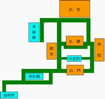 仏殿をさらに下ると「庫院(くいん)」、「浴室」と続き、左にまがると「山門」があります。