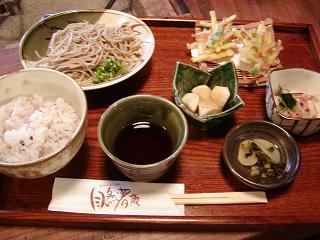 自然薯庵に行ってみると少し雰囲気が変わっていて、メニューも新しくなっていました。以前は蕎麦しかなかったのにボタン鍋(これは冬季限定)や松花堂弁当が増えていました。蕎麦もざる以外に天ぷら蕎麦やにしん蕎麦が増えています。私は「そば膳」、嫁さんは「ボタン鍋」を注文。そば膳が1,000円、ボタン鍋が1,300円でした。素朴で結構なお味でした。