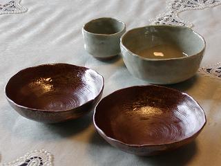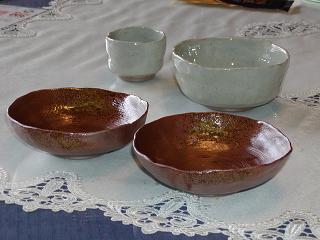 奥さんの方は結構上手くできていました。釉薬も奥さんのタイプ(「灰かけ」というそうです)の方がカッコよく見えます。もし、もう一度挑戦するなら「ふち」をきれいに仕上げることと釉薬を灰かけでやってみようかと思います。
