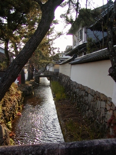 道の駅でもらったパンフレットによると山を降りたところに「寺町通り」という昔の城下町の面影の残る場所があるとのこと。行ってみるとJR「竹田駅」の裏手に白壁と小川が600mほど続く街並みがありました。すこし津和野のイメージさせる街並みでした(距離はとても短いですが)。