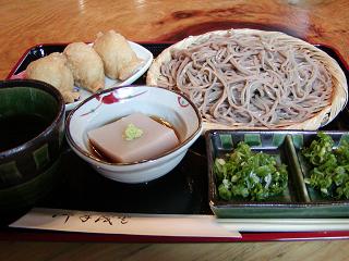 道の駅「みなみ波賀」の手前に手打ち蕎麦屋「ひむろ」がありました。時間も昼時だったので迷わず昼は蕎麦になりました。ざる蕎麦に稲荷すしと胡麻豆腐のついた「ひむろ定食」を食べました。