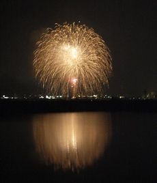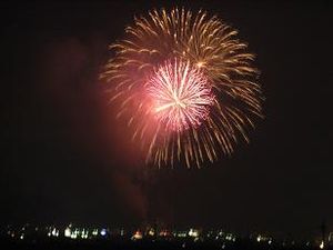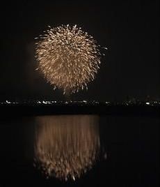 20:00から三田祭りの花火大会がありました。昨年は打上げ場所の近くの武庫川の川原まで見に行きましたが、今年は近くの池の畔から見学です。19:50頃に家を出て池に向かっていると20:00になったのか花火の音が聞こえてきました。坂道を下りていくと正面に打上げ花火が見えてきます。池の畔にシートを敷いて見物です。距離が離れているので、花火が見えてから音が聞こえるまで数秒のタイムラグがあります。昨年は近場で見ていたので、殆どタイムラグもなく衝撃波さえ肌に感じました。花火は約1時間ほどです。例年、同じようなパターンの打上げ花火ですが、結構見応えはあります。有名な花火大会ではないですが、家から歩いて見に行けるところが一番の長所です。三田祭りの花火大会を見ると、本格的な夏がきたなと思います。