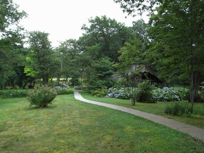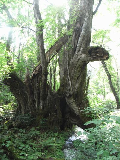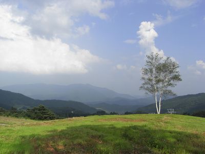滝を見た後、ハチ北にある「但馬高原植物園」に寄って見ました。植物園一帯は瀞川平(とろかわだいら)と呼ばれ、氷ノ山後山那岐山国定公園の一部です。自然のままの雰囲気が強く残っている植物園で、園内に池や湿地が多くあります。「和池の大カツラ」と呼ばれる巨木があり、その奥から湧水が流れ出ています。案内板によると日量5,000tだそうです。湧水はとても冷たく飲んでみるととても美味しかったです。標高700mの高原なので日陰のベンチに座っているとそよ風が涼しく気持ちがいいです。しかし、太陽の下に出るとやはり暑いです。散策するには5月頃が花咲く草木も多くて一番良さそうです。