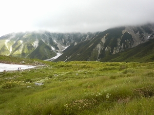 室堂に下山途中、霧が濃くなり小雨がぱらついてきました。しかし、大雨になることもなく一の越に到着です。しばらく様子を見ていると雨は止み、室堂まで下りたころには晴れてきましたが、雄山山頂は相変わらず霧の中でした。少し時間があるので、みくりが池周辺を散策しました。遊歩道に人だかりがしているので何かなと見てみると、雷鳥がいるではありませんか。立山で野生の雷鳥を見たのは初めてです。二羽いました。感動ものです。みくりが池山荘で温泉に入ろうかとも思ったのですが、時間も遅かったので下山することに。室堂17:00発のバスで美女平、美女平からケーブルで立山駅に着いたのは18:07でした。本当は称名滝へも行きたかったのですが、時間が遅すぎます。明日、再度出直すことにします。