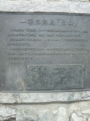 立山一等三角点 雄山山頂にある石碑