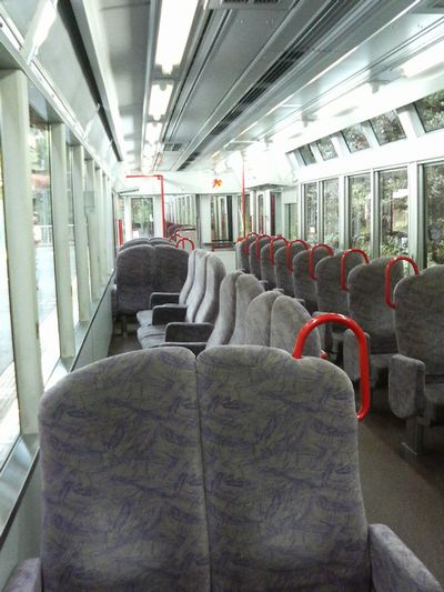 乗ってみると、座席が窓側に向いていました。びっくりです。