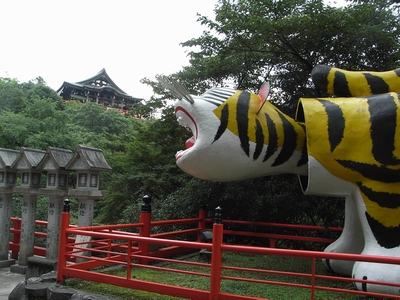 お寺に入ったところに大きな張子の虎があります。