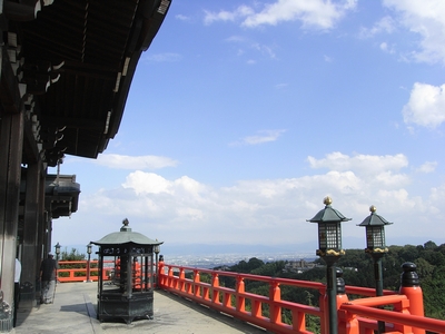 本堂の舞台からは、眼下に奈良平野を一望のもとに見渡すことができ、まさに絶景です。