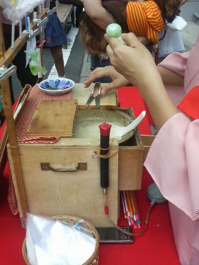 結構若い女性が飴細工を作っていて、人が一杯でした。