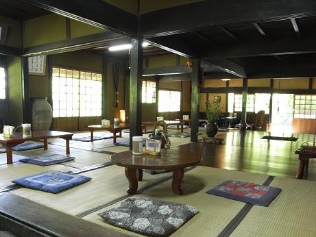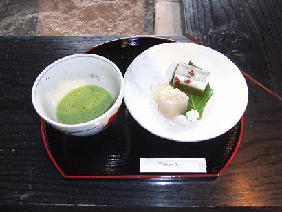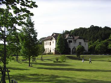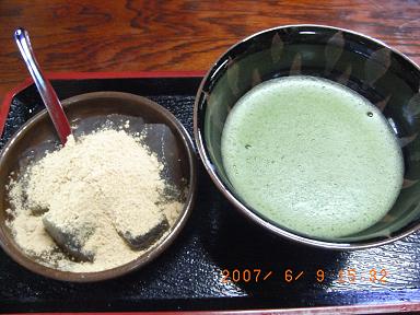 滝を見た後に篠山の「お菓子の里丹波」に行きました。つくばねの滝から結構な距離です。東条湖から大川瀬、今田町を抜けて372号線から176号線に出て篠山に到着。「お菓子の里丹波」には庭園があり、庭園内に「ウィーン館」「ドイツ館」「茅葺の家」などがあります。それぞれが喫茶店やパン屋です。「茅葺の家」は和菓子を販売しており、店内で抹茶を頂けます。抹茶と和菓子の「あじさいセット」を注文しました。窓から芝生広場越しにウィーン館が見えて、なかなかいい雰囲気でした。抹茶は少し濃い目の味で美味しく頂きました。もちろん和菓子も美味しかったです。