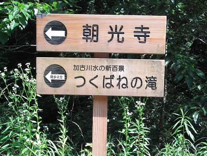 今日はインターネット「兵庫の滝めぐり」で見つけた近くの滝に行ってきました。場所は東条湖の近くの朝光寺の脇を流れる渓谷にあります。朝光寺は国宝だそうで、厳粛な雰囲気がするお寺です。仁王門、本堂、その横に二重の塔があります。あたりに衝く羽根の木が自生している事から「つくばねの滝」と呼ばれているそうです。なかなかよい雰囲気の渓谷で、滝も想像以上に水量が多く見応えがありました。滝のまわりはヒンヤリと涼しく気分が落ち着きます。ただ川の水が少々濁っていたのが残念です。