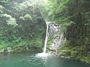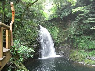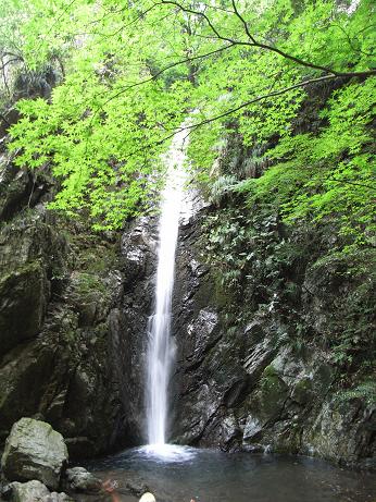 先週に続き今週も「兵庫の滝めぐり」を参考に近郊の滝を見に行きました。今日は関西電力猪名川変電所近くにある不動滝を訪れました。国道173号線を北上、杉生交差点を右折し変電所手前の細道を左折します。そこからは舗装されてますが非常に狭い道が続きます。変電所が見えなくなってからは案内板もなく、はたしてこの道であっているのか非常に不安になるような細道が延々と続きます。道は本当に狭く、車一台がやっと通れる程度です。途中で何度か引き返そうかと思いましたが、ここまで来たのにという思いで直進します。変電所が見えなくなってから10分ほど山に入ったところで不動尊らしきものが見えてきました。本当にホッとしました。車から降りて数分で不動滝です。昨日の雨のせいか思ったより水量も多く、見ごたえのある滝です。滝近くは本当にヒンヤリして寒いくらいでした。あまり人が来ることがないのか少々荒れた感じがします。車で来るには悪路なので結構大変かと思いますが、歩いてくるとなると30分以上はかかりそうです。