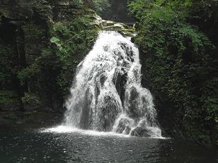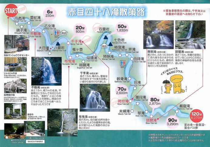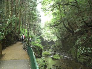 今日は遠出をして名張方面の赤目四十八滝から曽爾高原へ行ってきました。朝8時過ぎに家を出発し、三田から長尾トンネルを抜けて川西池田に出て、川西小花から阪神高速、西名阪、名阪国道とドライブし、針ICで下車。針IC横の道の駅「針T・R・S」で休憩です。自宅から100km近くあります。結構なロングドライブでした。道の駅でスタンプを押して、赤目口に向かいます。近鉄赤目口の駅近くを走り抜け、赤目滝へ。入り口あたりで、もうヒンヤリしています。入山料二人分の600円を払って日本サンショウウオセンターを通り抜け滝道へ。すぐ「行者滝」が見えてきます。突然、別世界に迷い込んだ感じです。空気がヒンヤリしていてとても涼しく感じます。「行者滝」から見応えのある滝としては「霊蛇滝」「不動滝」「千手滝」「布曳滝」「荷担滝」「琵琶滝」と続きます。それ以外にも「乙女滝」「大日滝」「陰陽滝」「姉妹滝」「骸骨滝」「雛壇滝」などがあります。「琵琶滝」の奥にも「岩窟滝」という滝がありますが、さすがに疲れて「琵琶滝」で引き返しました。入り口から「琵琶滝」迄でも100分近くかかりました。20年前に来たときは、最後の「出会」まで行った記憶があります。さすがに歳をとったなと痛感しました。しかし、夏は滝がいいですね。本当に涼しく、マイナスイオン効果なのか気分も癒されます。百畳岩の茶店で昼ご飯を食べていると、川の中に野生のサンショウウオを見つけました。野生のサンショウウオが見れるなんて、もうビックリです。