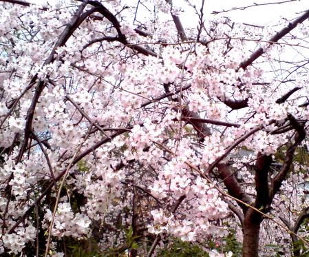 時間があったので、帰りに有馬に寄って見ました。有馬はすごい人出で、街中は車もかなり渋滞していました。観光案内所の前の階段を登ると善福寺という寺があります。ここは枝垂れ桜が有名な寺です。桜は満開に近い状態でした。太閤橋近くに咲いている枝垂れ桜もほぼ満開でした。枝垂れ桜は早く咲くのでしょうか。でも、夙川より有馬の方が早く咲いているのは、なんとなく不思議な気がします。
