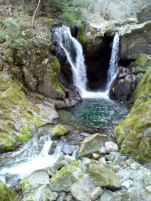 近くのお寺を散策したり湖の周囲をドライブした後、昨秋見に行った恩水渓谷の入り口近くにある明神滝を見に行きました。以前にも増して落石などで運転しにくくなっていましたが、滝はとってもきれいでした。滝を見た後は29号線を南下し、県道8号線経由で西脇までドライブ。西脇の「へその湯」という温泉でホッコリしてから帰宅。昨日と今日と二日連続で桜を求めてのドライブでした。