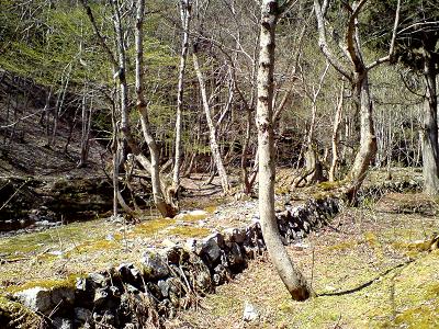 廃村八丁の石垣跡 廃村八丁近くの風呂場?