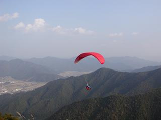 山頂は視界が広く、はるか下に田んぼや佐治川が見えます。とりえず東屋みたいなものがあったのでお昼を食べました。しばらくパラグライダーを見てから山を降りました。